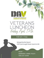Cape and Islands Veterans Outreach Center is proud to partner with Disabled American Veterans Auxiliary to host an upcoming Veterans Luncheon! We invite all veterans to join us for a free lunch and an afternoon of camaraderie. It is an honor to serve those who have served us, and we look forward to bringing our community together for this special event.